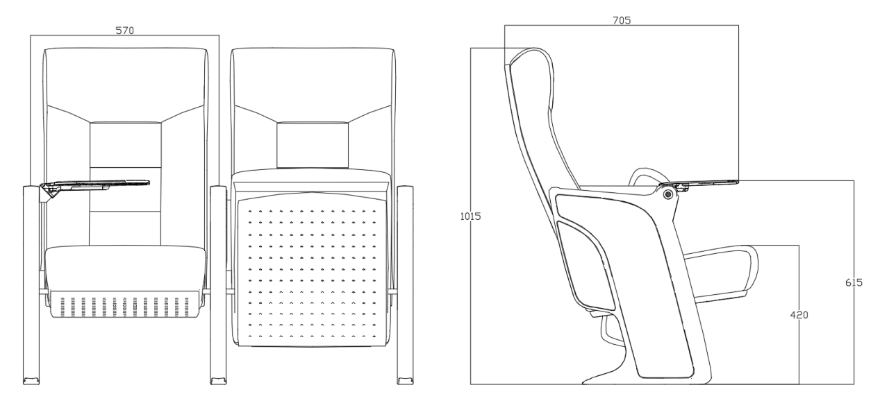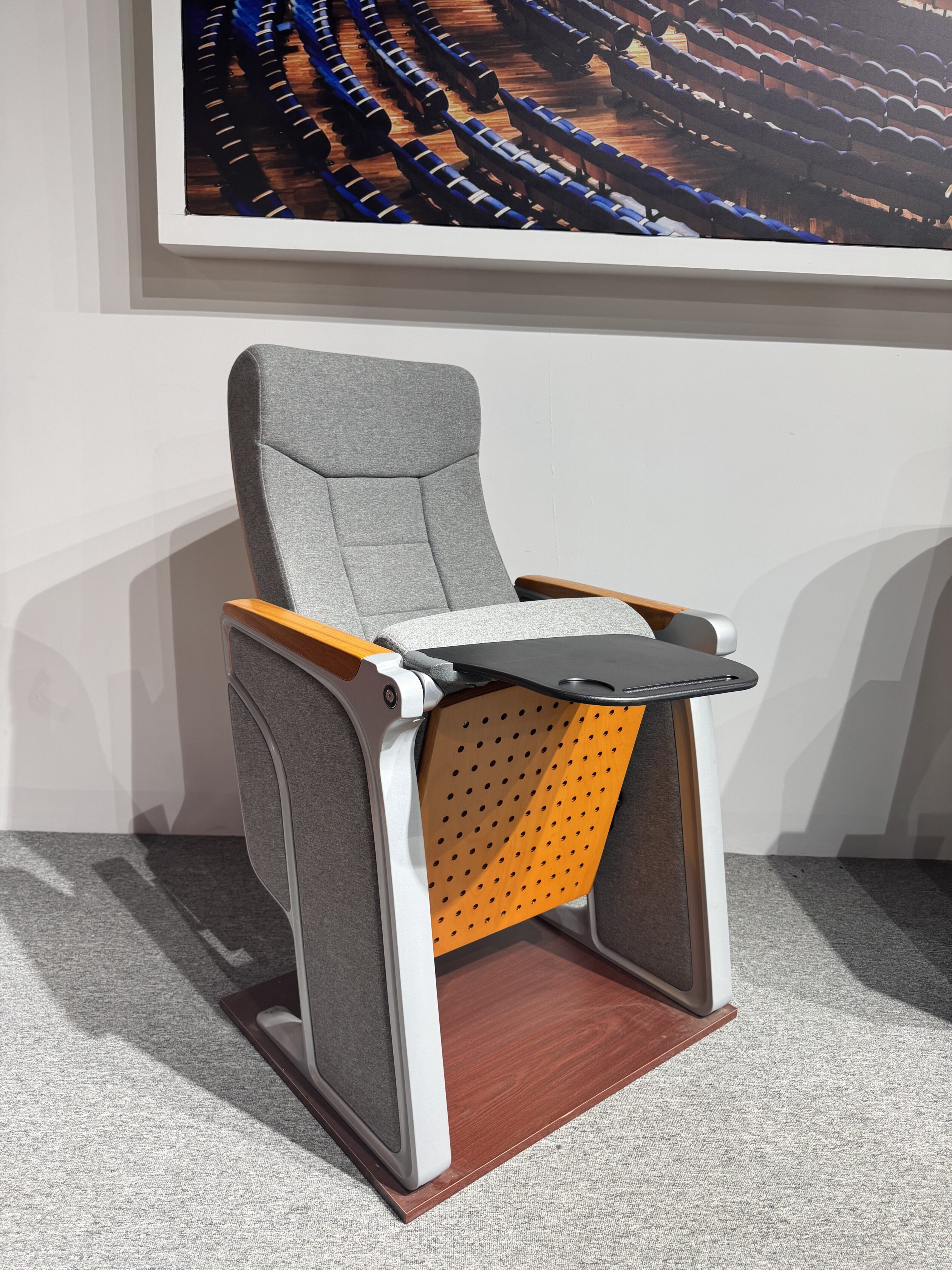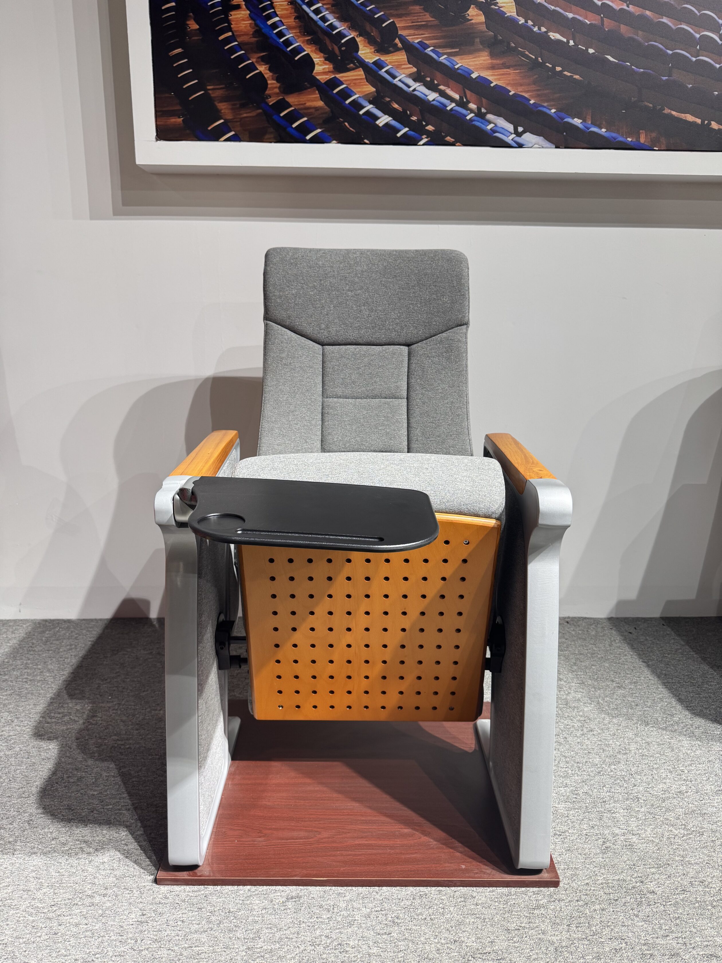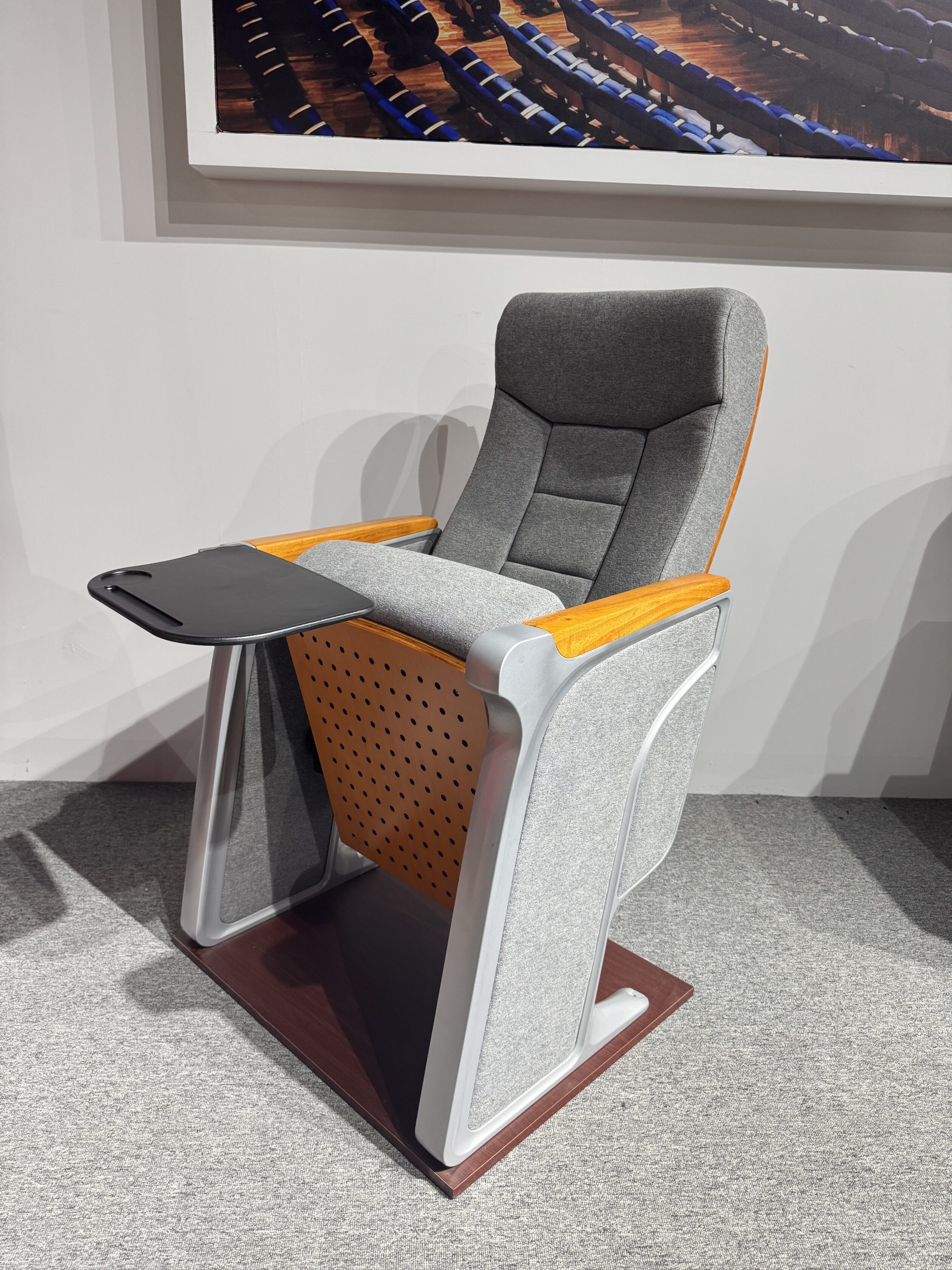 Cơ cấu bàn viết sử dụng trục khí tự hồi vị chậm (slow-return), người đứng dậy là tự thu về. Áp dụng cơ chế thanh truyền động thẳng, đảm bảo hồi vị đồng bộ. Thời gian hồi vị khoảng 2 giây (hoặc loại nhanh 0.6 giây). Mặt bàn làm từ ABS cao cấp hoặc MDF mật độ cao, ép nguội bề mặt chống cháy, viền PU bo kín. Tay đỡ bàn viết đúc nguyên khối bằng hợp kim nhôm, đáp ứng các tiêu chuẩn cơ lý hiện hành. |