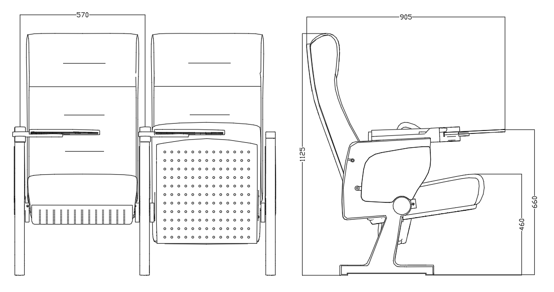 Ghế hội trường ADM69-B sử dụng mút lạnh mật độ cao cho phần ngồi và lưng, kết hợp khung thép chắc chắn. Chân ghế làm từ hợp kim nhôm đúc kiểu dáng hiện đại, tấm gỗ phủ veneer chống cong vênh. Tích hợp lỗ hút âm tổ ong giảm vang, tay vịn gỗ sơn 6 lớp và bàn viết ẩn tiện dụng, mang lại sự thoải mái, yên tĩnh và tính thẩm mỹ cao cho không gian hội họp.